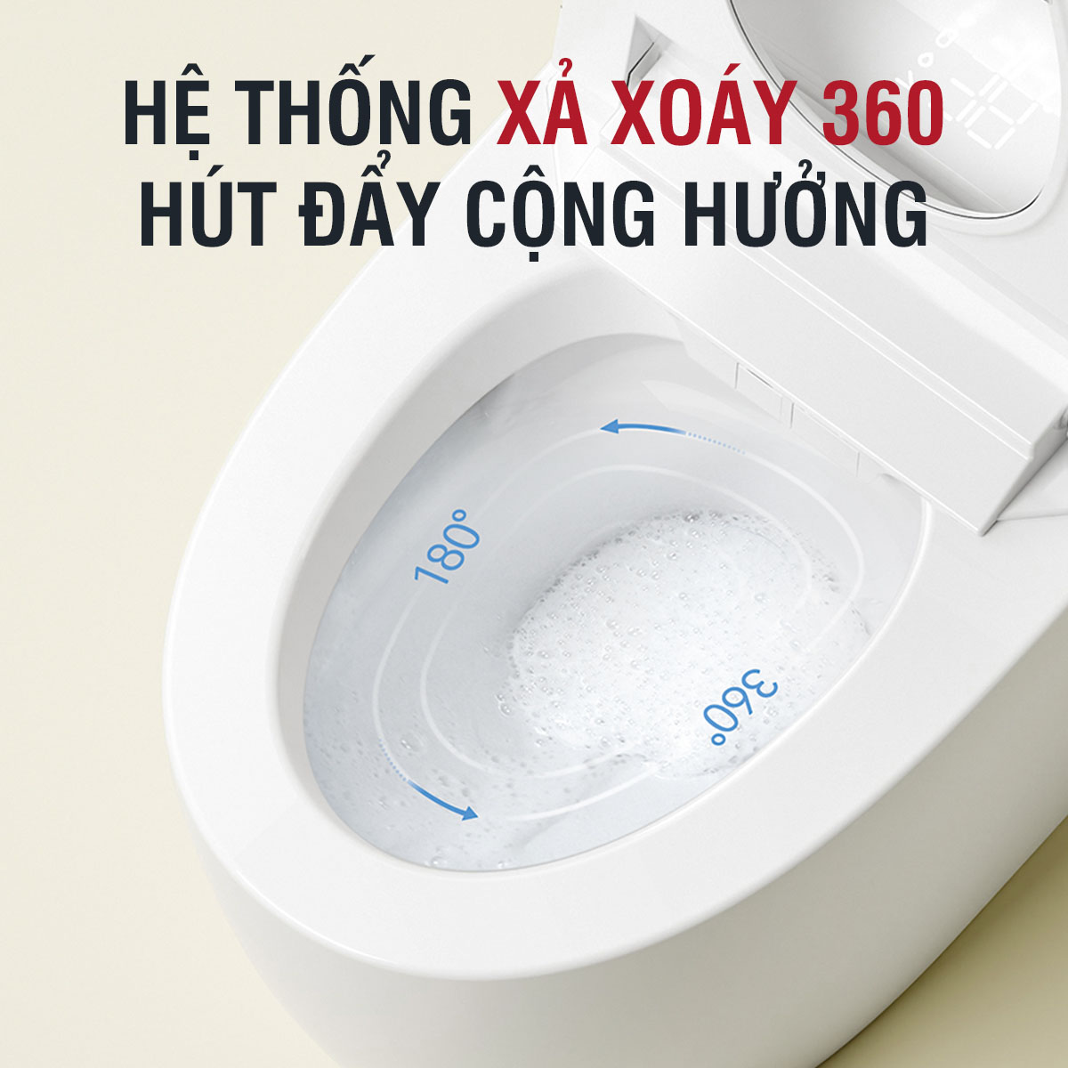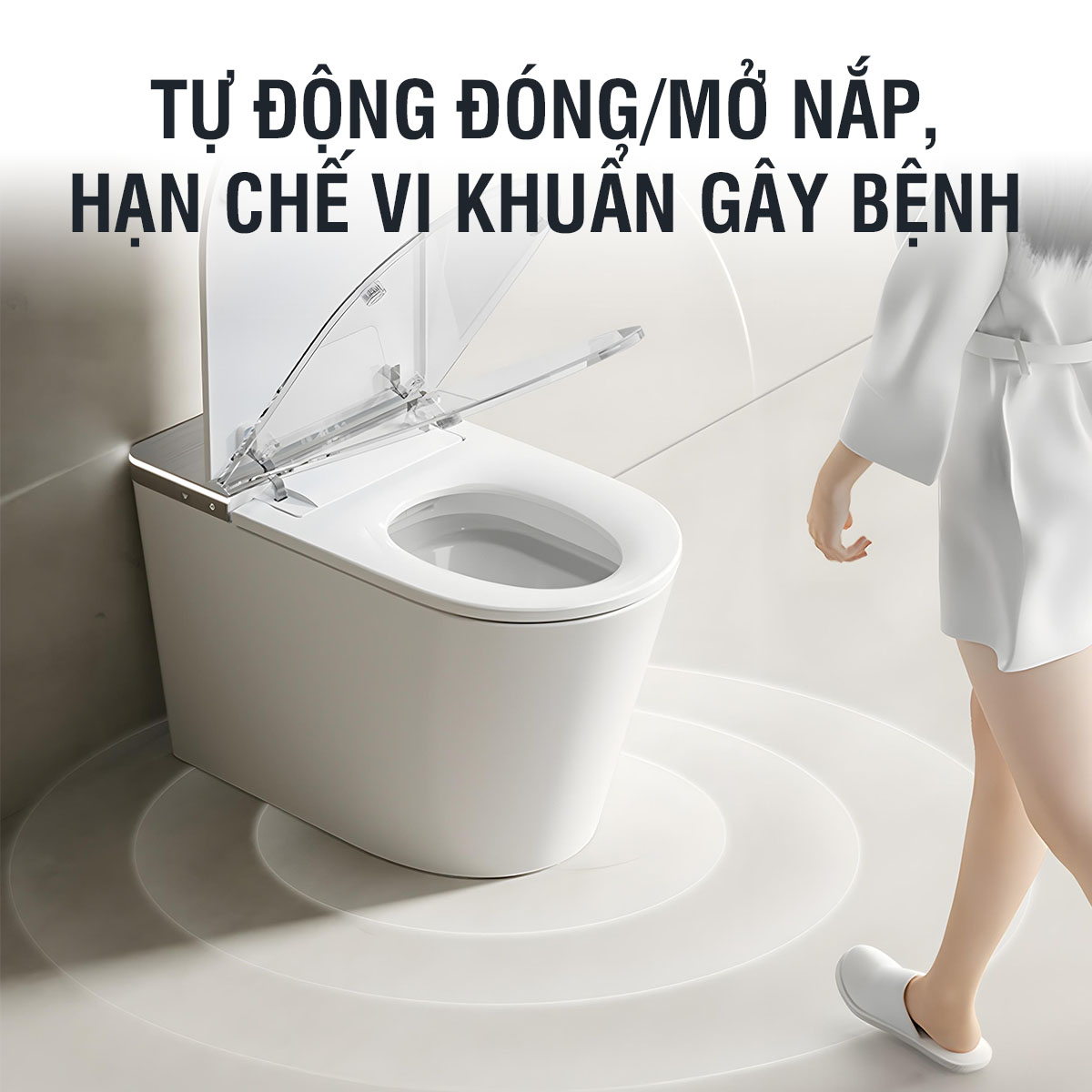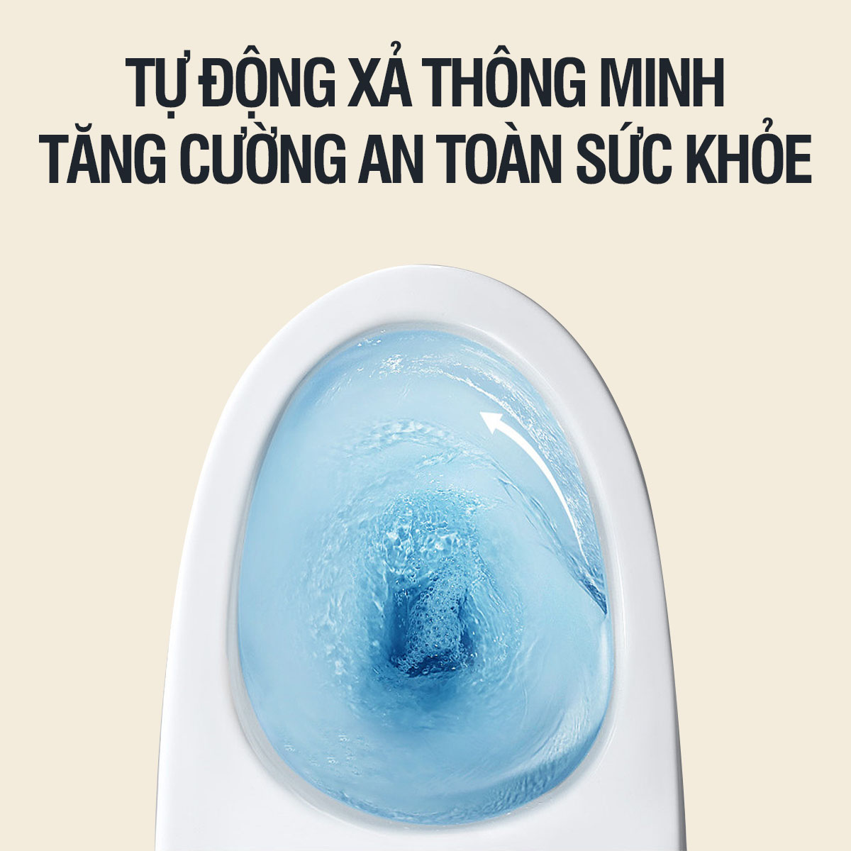 6. Hệ thống xả kép thông minh, siêu yên tĩnh: Tính năng tự động xả nước sau khi người dùng rời đi giúp ngăn ngừa vi khuẩn. Đặc biệt, hệ thống xả kép thông minh có khả năng đo thời gian sử dụng để tự động điều chỉnh lượng nước xả (xả tiểu/xả đại) một cách chính xác, vừa tiết kiệm nước tối đa vừa đảm bảo "chuẩn yên tĩnh", không ảnh hưởng đến giấc ngủ của gia đình.