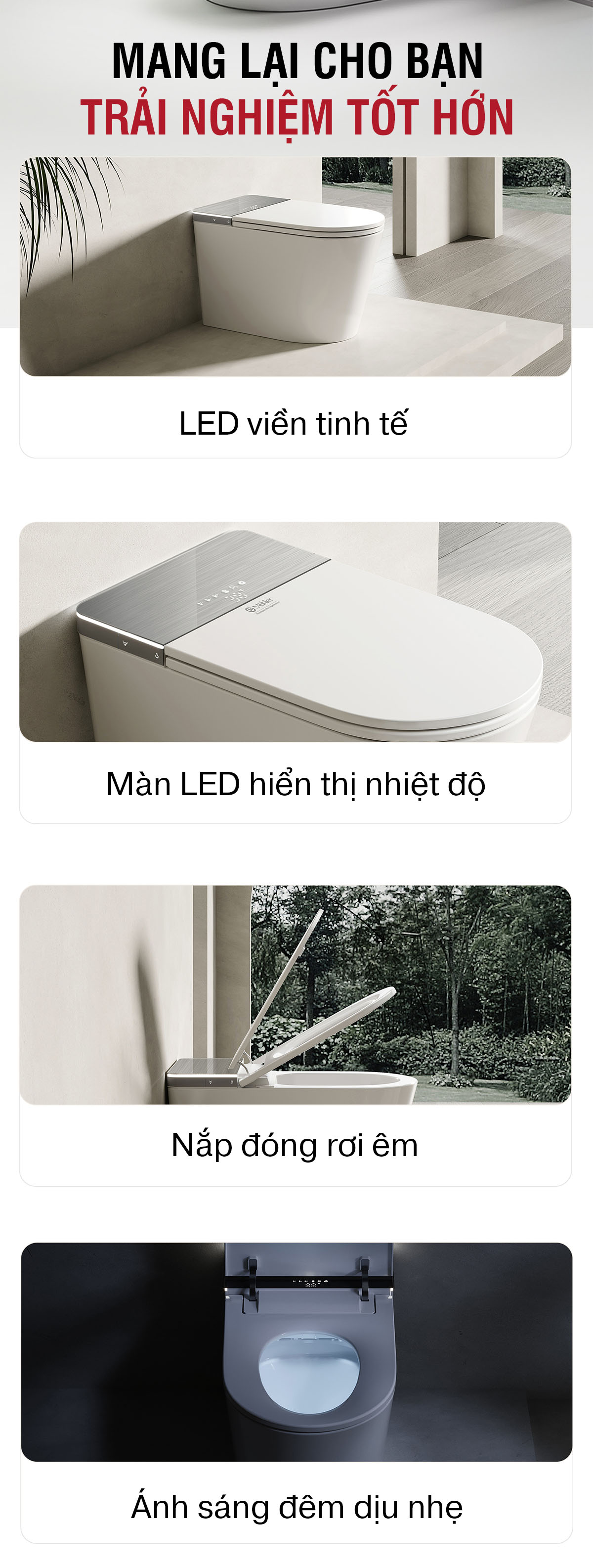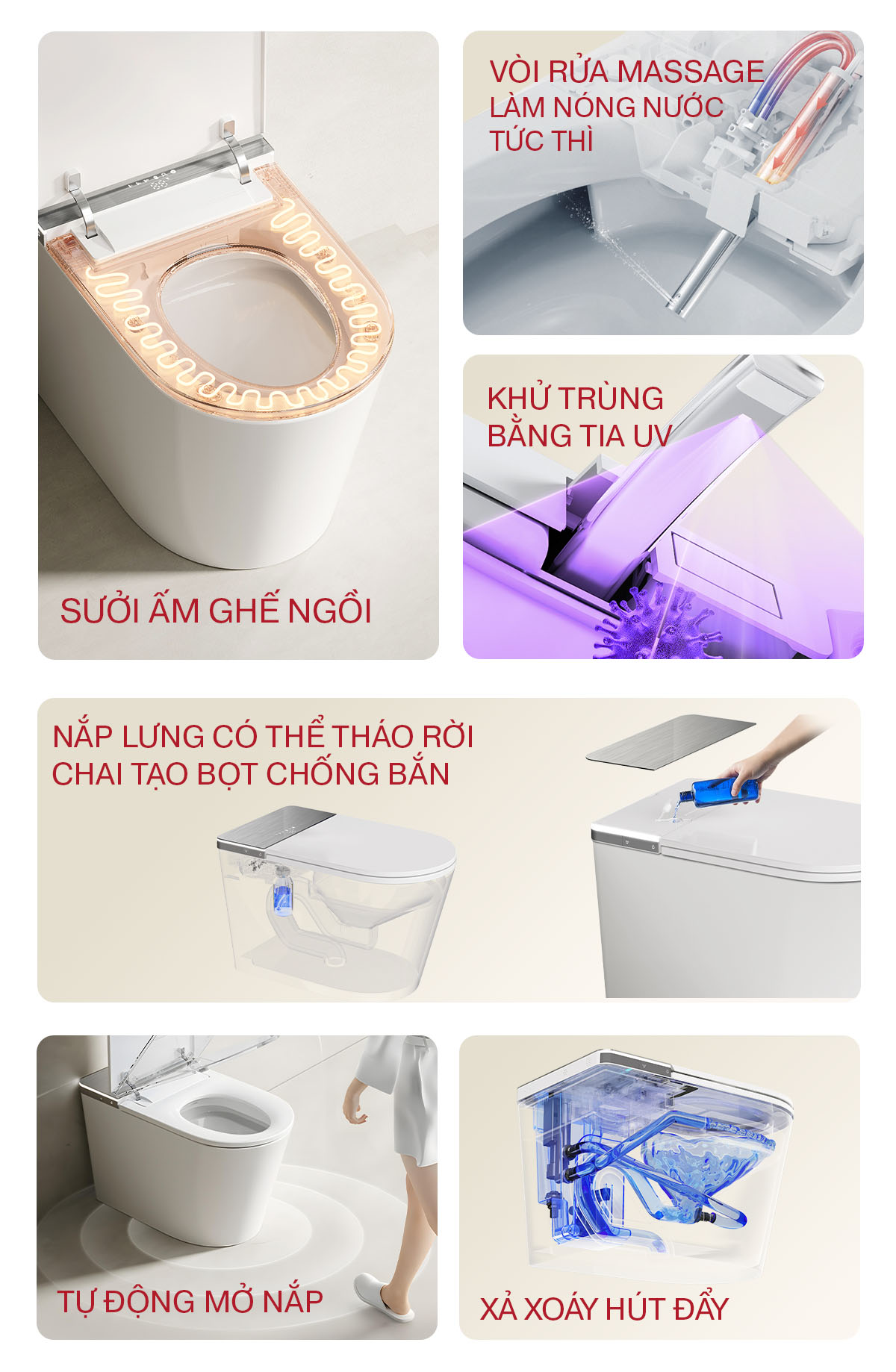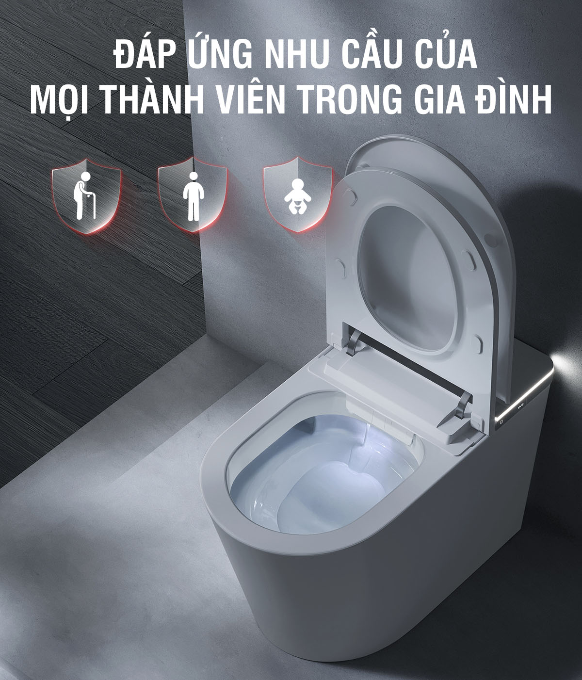 6. Hệ thống xả kép thông minh, siêu yên tĩnh: Tính năng tự động xả nước sau khi người dùng rời đi giúp ngăn ngừa vi khuẩn. Đặc biệt, hệ thống xả kép thông minh có khả năng đo thời gian sử dụng để tự động điều chỉnh lượng nước xả (xả tiểu/xả đại) một cách chính xác, vừa tiết kiệm nước tối đa vừa đảm bảo "chuẩn yên tĩnh", không ảnh hưởng đến giấc ngủ của gia đình.