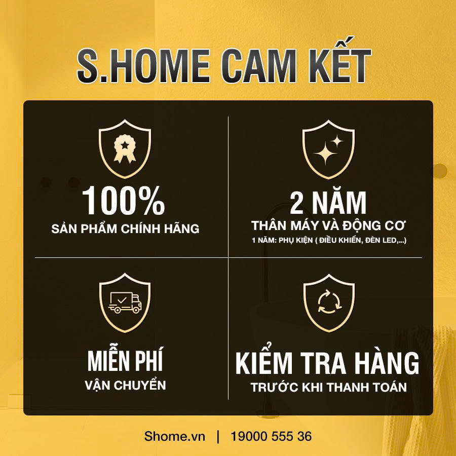 Bảo hành: Thân máy, động cơ BH 2 năm, phụ kiện: điều khiển, đèn LED...1 năm