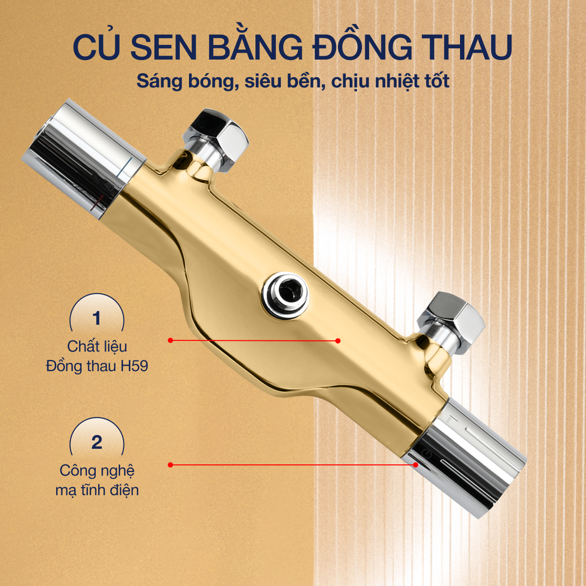 - Chất liệu cao cấp: Đồng thau H59 nguyên khối, chống ăn mòn, tuổi thọ vượt trội.