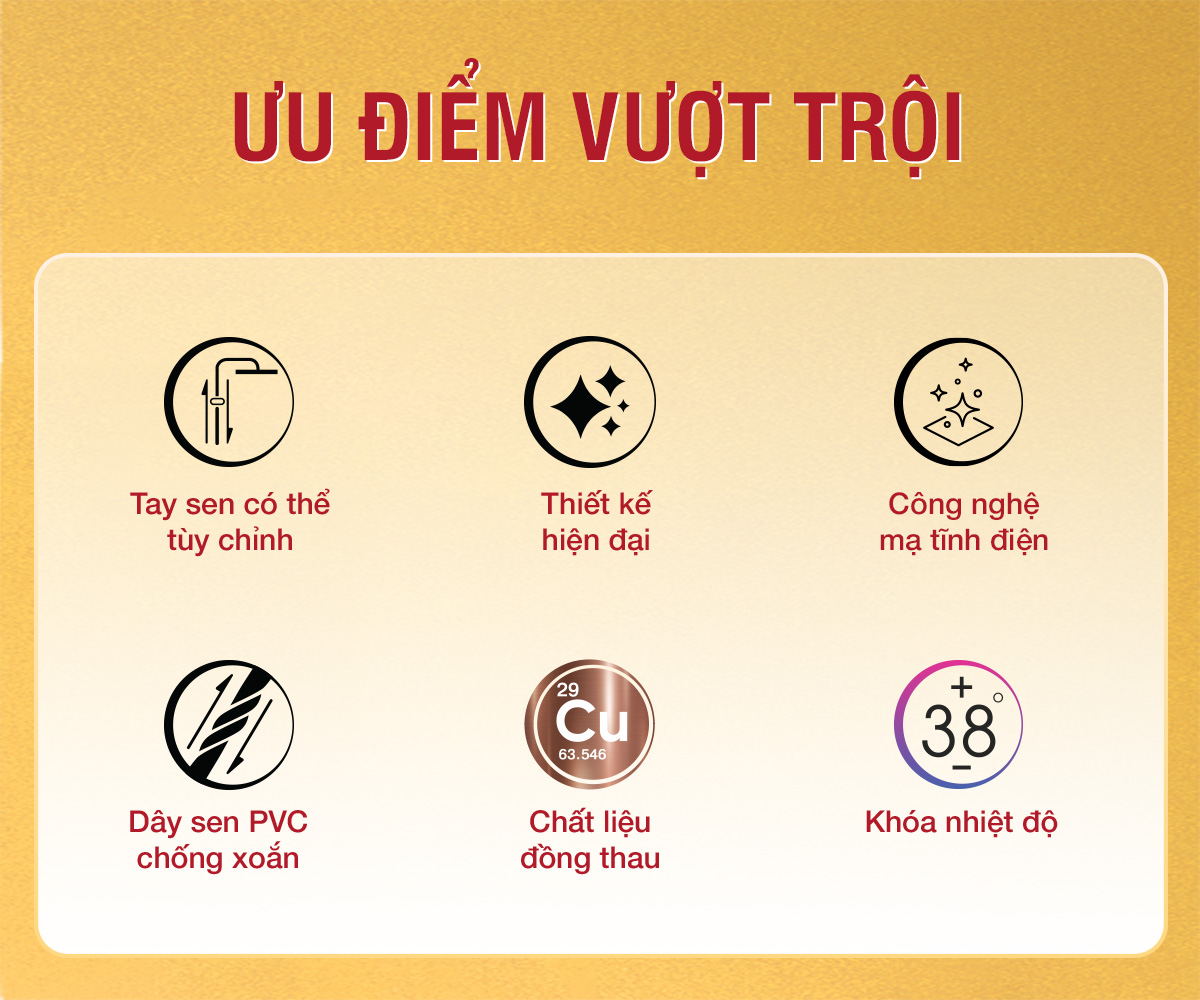 Với tính năng khóa nhiệt độ , sen cây đảm bảo duy trì nhiệt độ nước ổn định suốt quá trình sử dụng, tránh tình trạng nước quá nóng hoặc quá lạnh, đặc biệt là trong những gia đình có trẻ nhỏ hoặc người lớn tuổi , mang lại cảm giác thoải mái và an toàn tuyệt đối.