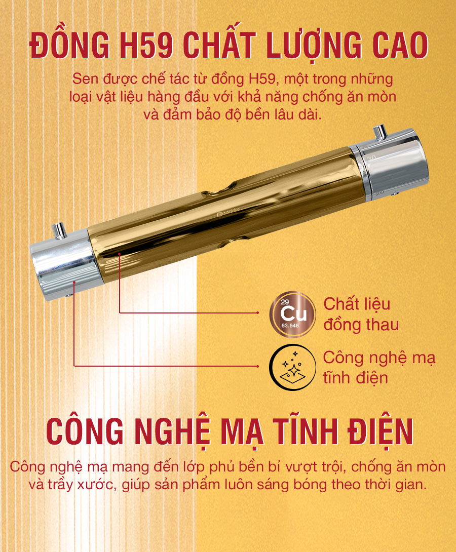 Đồng H59 chất lượng cao: Sen được chế tác từ đồng H59, một trong những loại vật liệu hàng đầu với khả năng chống ăn mòn và đảm bảo độ bền lâu dài.