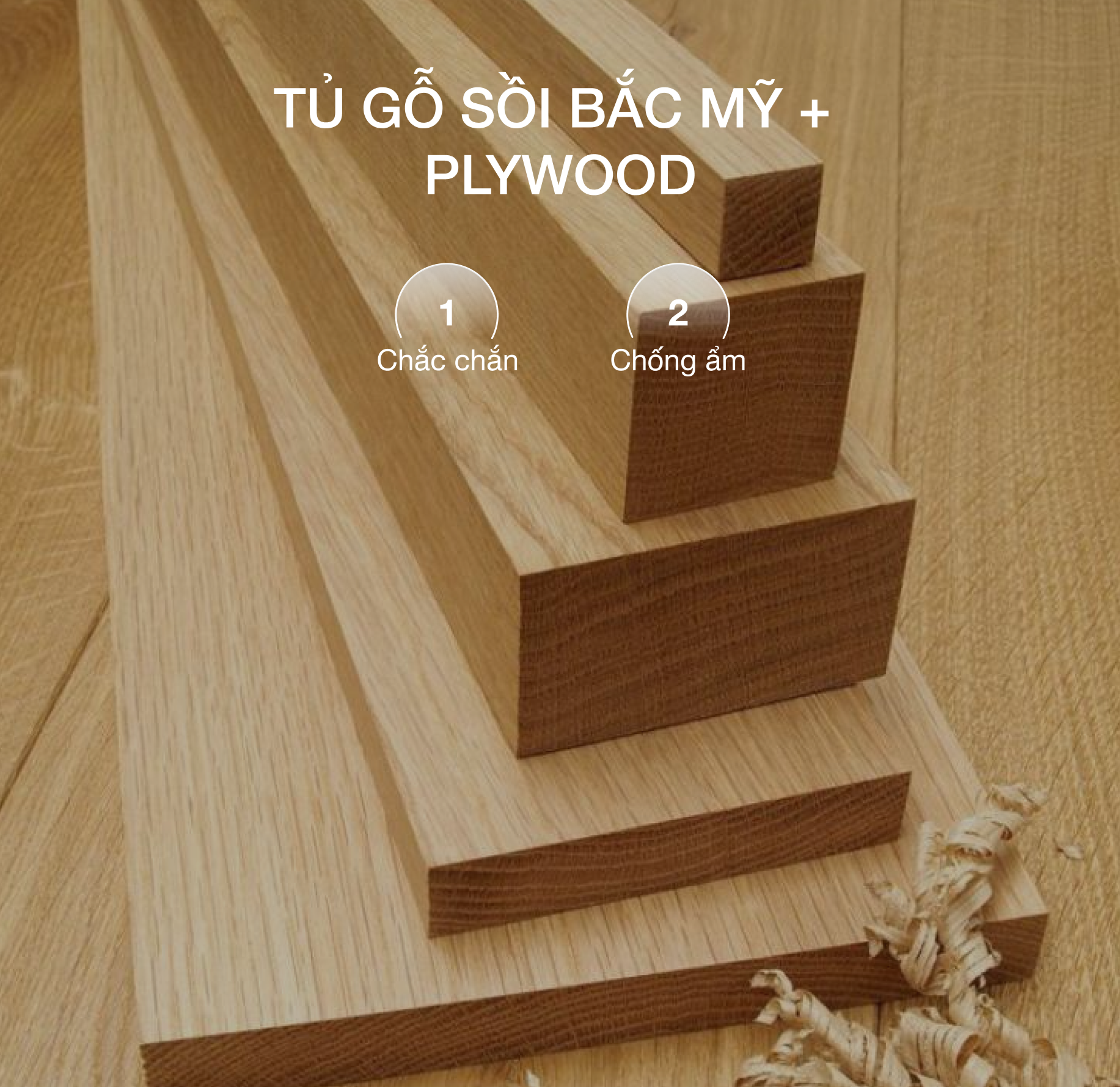 Khung tủ từ gỗ sồi Bắc Mỹ + Plywood, bền chắc, chống ẩm tốt.