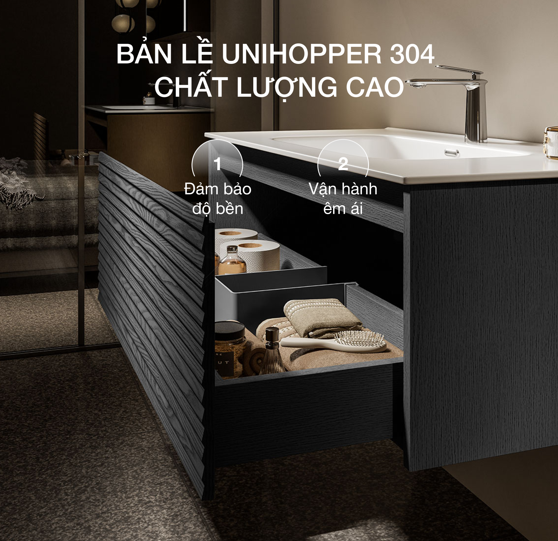 Phụ kiện Unihopper 304 cao cấp, vận hành êm ái, bền bỉ.