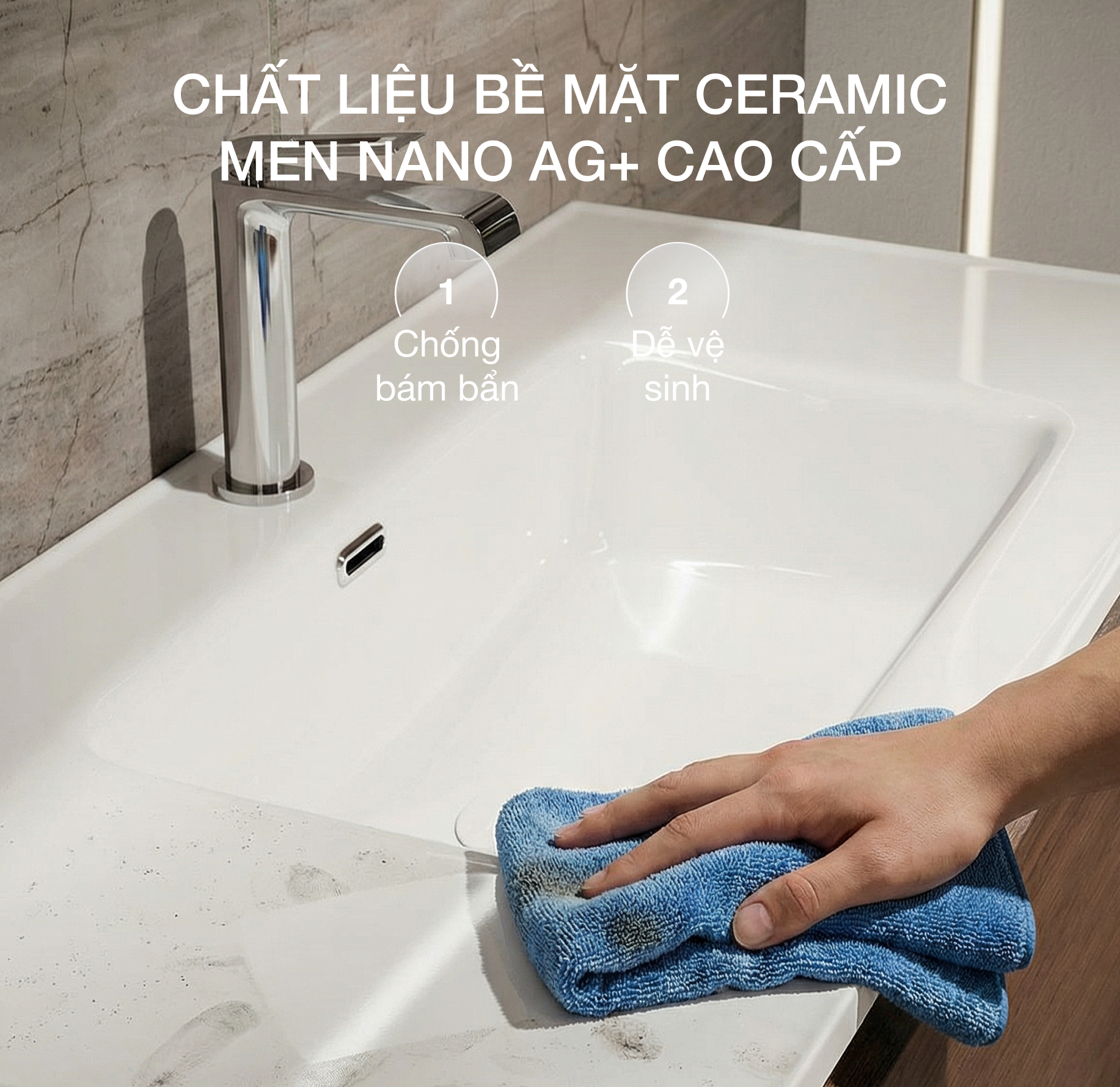 Chậu rửa sứ Ceramic cao cấp, chống bám bẩn, dễ vệ sinh.