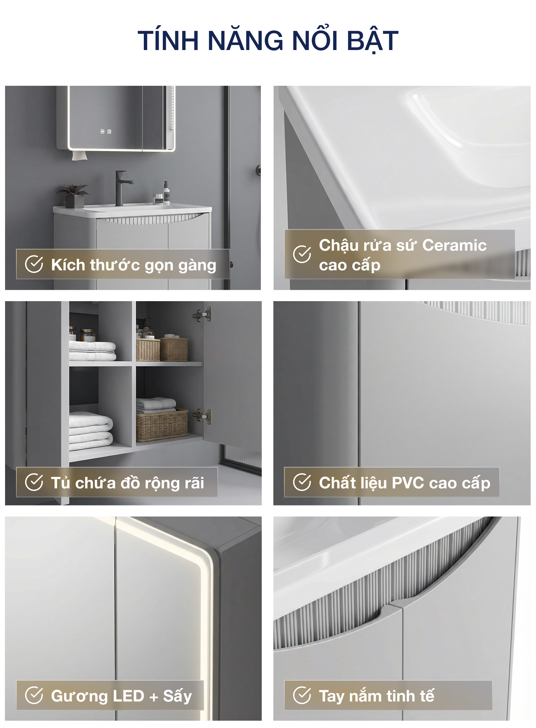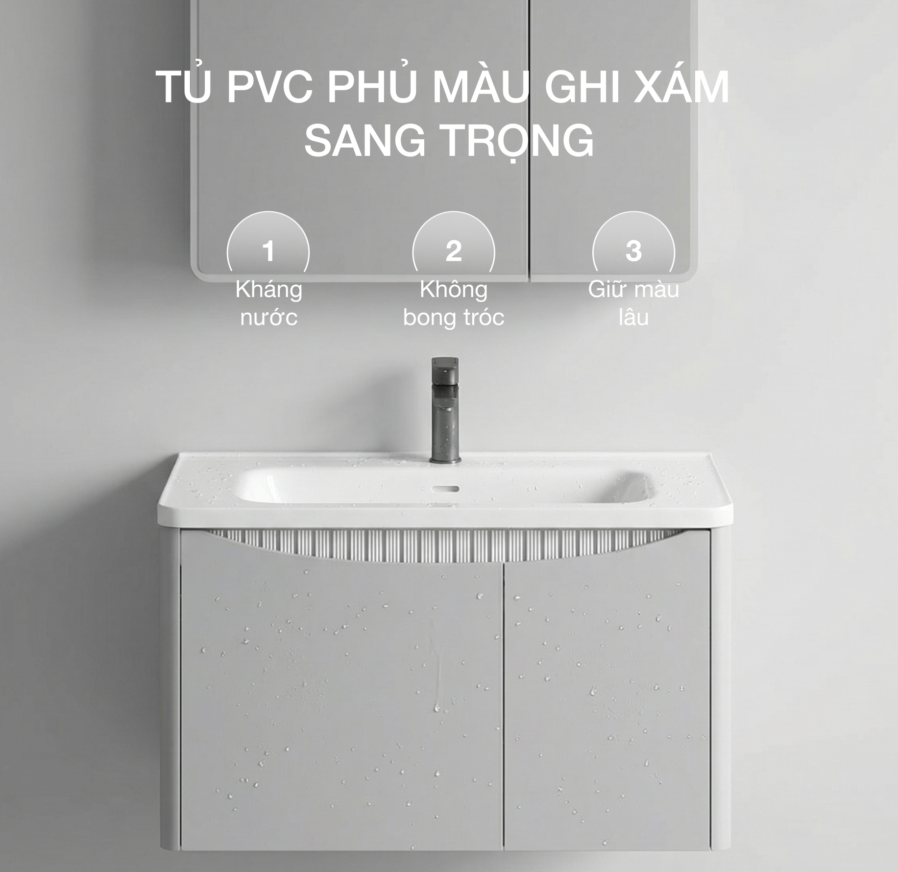 - Tủ PVC phủ màu ghi xám sang trọng – kháng nước, không bong tróc, giữ màu lâu