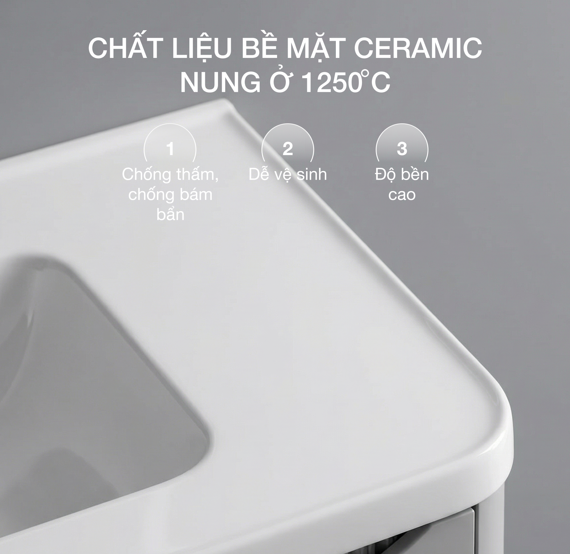 - Mặt đá Ceramic nguyên khối – chống thấm, khó bám bẩn, độ bền cao