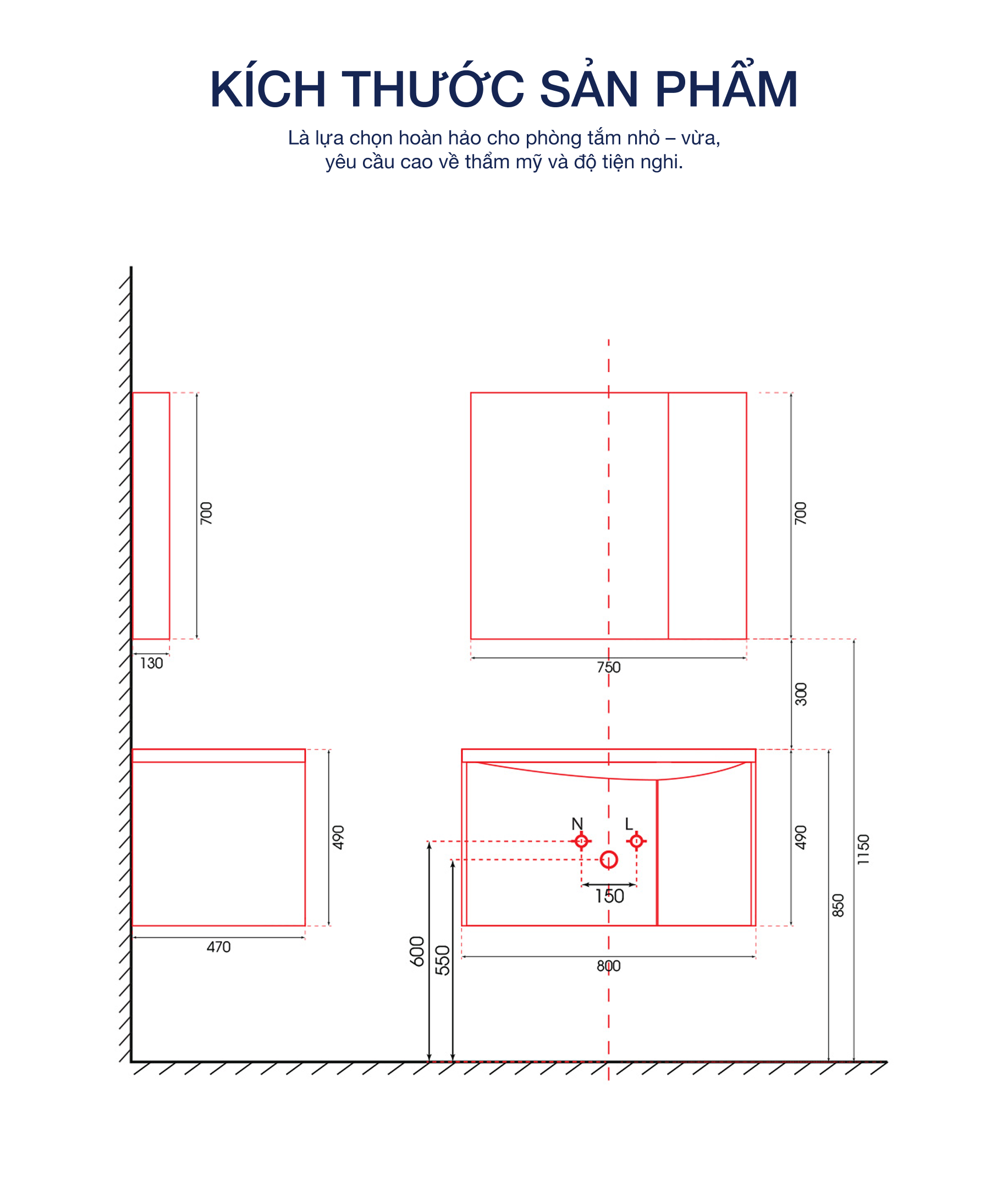 - Kích thước tủ dưới: 800 x 470 x 490 mm