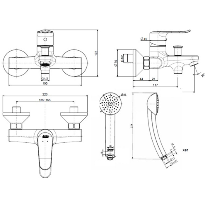 Bản vẽ kỹ thuật sen tắm tay American Standard WF-0711 Neo Modern