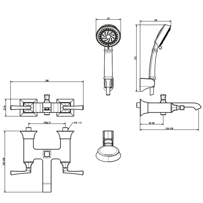 Bản vẽ kích thước sen tắm tay American Standard WF-1611 Kastello